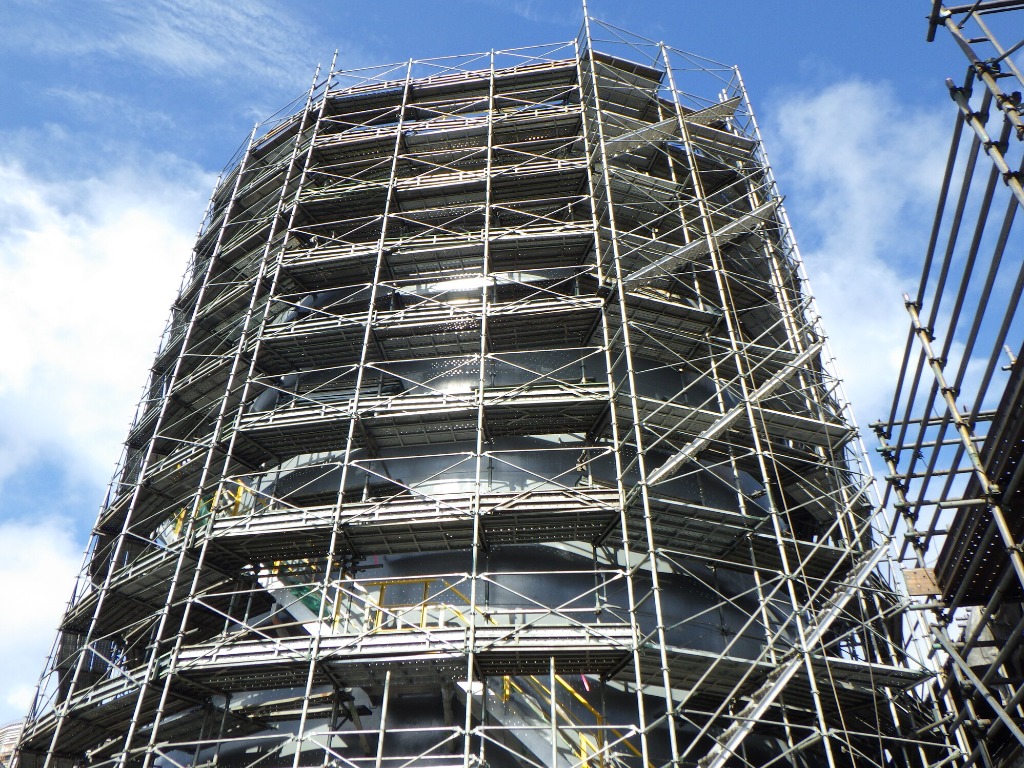 単管足場は、鉄パイプを組み合わせて構築する足場であり、主に高層建築物で使用されます。